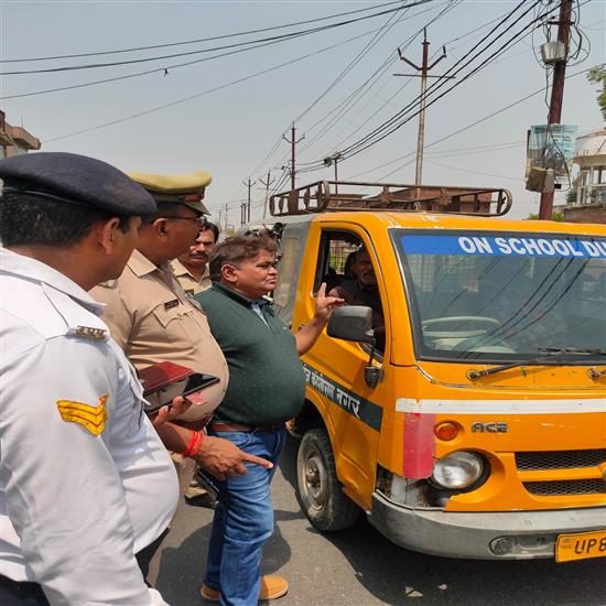 कासगंज कासगंज में ए०आर०टी०ओ० राजेश राजपूत यात्रीकर अधिकारी सीमा गोयल ए०आर०एम० श्री संजीव कुमार यादव एवं टी०आई० गणेश सिंह चौहान की संयुक्त टीमों ने जनपद के विभिन्न थाना क्षेत्रों में संचालित डग्गेमार बसों / ऑटो रिक्शा एवं बिना फिटनेस के संचालित स्कूली वाहनों एवं स्कूल बसों के मानक पूरा न करने वाली स्कूली वाहनों एवं मॉडीफाइड साइलेन्सर से संचालित वाहनों के प्रति प्रवर्तन कार्यवाही करते हुए संयुक्त टीम ने कुल 66 वाहनों का चालान किया गया, जिसमें 09 वाहने थाना सहावर 03 वाहन थाना सोरों, 07 वाहनों को ट्रैफिक पुलिस कार्यालय कासगंज में सीज करते हुये कुल 19 वाहनों को सीज किया गया, जिसमें 05 स्कूली वाहन जो कि बिना फिटनेस एवं स्कूली वाहनों के मानक पूर्ण नही कर रहे थे, को सीज किया गया एवं 07 स्कूली वाहनों का चालान करते हुए कुल 12 स्कूली वाहनों के विरुद्ध प्रवर्तन कार्यवाही की गयी। ए०आर०टी०ओ० राजेश राजपूत ने जनपद के समस्त स्कूली प्रबन्धक / प्रधानाचार्यों को यह निर्देश दिए हैं कि जिन स्कूली वाहनों की फिटनेस की वैद्यता समाप्त है या वह वाहनें जो स्कूली वाहनों के मानक को पूर्ण नहीं कर रही हैं, वह मानक पूर्ण कराकर विद्यालय के प्रधानाचार्य / प्रबन्धक का नाम, फिटनेस की वैधता, परमिट की वैधता, चालक का वैध लाइसेंस एवं चालक के चरित्र प्रमाण पत्र की स्थिति प्रस्तुत करते हुये किसी भी कार्यदिवस में आकर अपनी वाहनों की फिटनेस करा लें l अन्यथा किसी भी प्रकार की अप्रिय स्थिति में उनकी पूर्ण जिम्मेदारी होगी, उनके विरुद्ध मोटरयान अधिनियम की सुसंगित धाराओं में विधिक कार्यवाही करते हुए उनकी वाहनों के पंजीयन निरस्तीकरण की कार्यवाही की जायेगी।