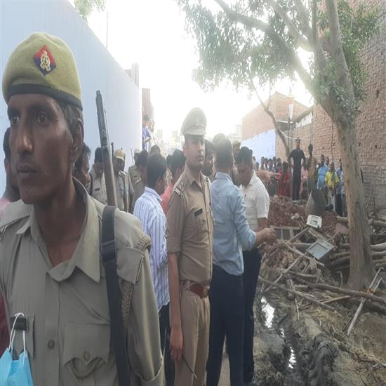 कासगंज शहर के चामुंडा मंदिर परिसर की जमीन पर अवैध रूप से कब्जा कर निर्माण करने वालों के विरुद्ध कार्रवाई की है। डीएम हर्षिता माथुर के निर्देश पर एसडीएम पंकज कुमार, सीओ डीके पंत, तहसीलदार अजय यादव, कोतवाली प्रभारी निरीक्षक धीरेंद्र मोहन शर्मा सहित अन्य अधिकारी लाव लश्कर के साथ मौके पर पहुंचे। उन्होंने विगत कई वर्षों से लगातार हो रहे निर्माण पर बुलडोजर चलवाया है। एसडीएम ने बताया है कि पूर्व में अतिक्रमणकारियों को नोटिस जारी किया गया था। उन्होंने स्वयं अतिक्रमण नहीं हटाया। इसके चलते जिला प्रशासन के निर्देश पर कार्यवाही अमल में लाई गई है। इंस्पेक्टर क्राइम शिव शंकर गुप्ता एसएसआई सत्यपाल भाटी उपनिरीक्षक आबिद कुरैशी, उपनिरीक्षक कल्याण सिंह, उपनिरीक्षक भूदेव प्रसाद सिंह सहित बड़ी संख्या में पुलिस बल मौजूद रहा।